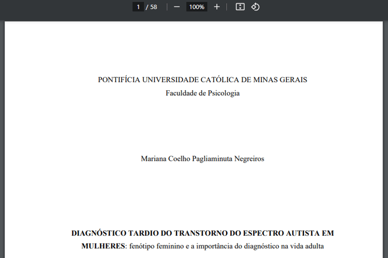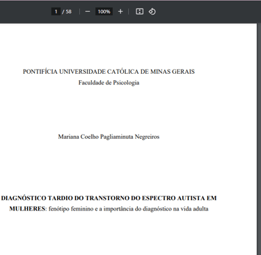 Foi assim que decidi focar meu Trabalho de Conclusão de Curso (TCC) no estudo do “Diagnóstico Tardio do Transtorno do Espectro Autista em Mulheres: Fenótipo Feminino e a Importância do Diagnóstico na Vida Adulta”.